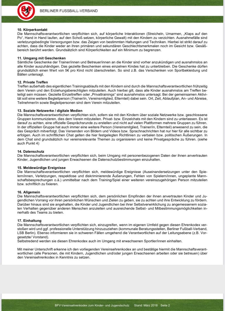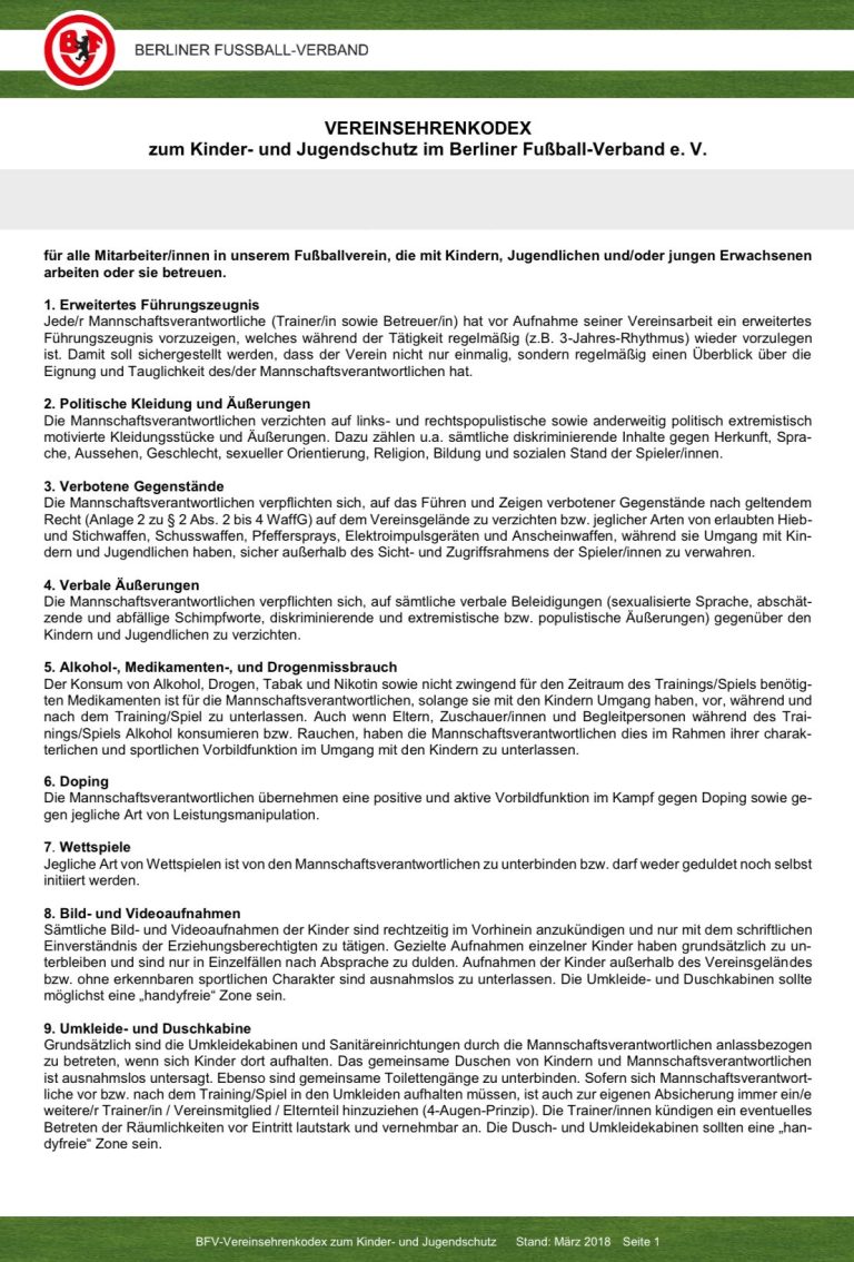 Wir halten uns im Verein natürlich auch an den Vereinsehrenkodex des Berliner Fußballverbandes. Diesen könnt Ihr folgend im Detail nachlesen.